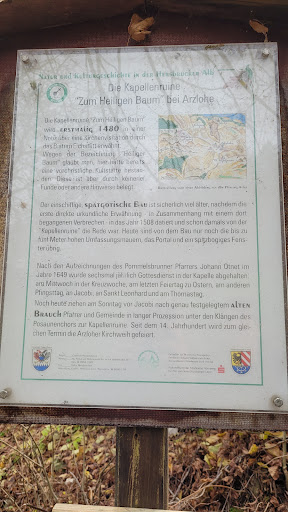 Read moreLaut Infotafel vor Ort wurde diese Kapelle 1480 erstmalig erwähnt, sie scheint aber älter zu sein. Da es keine Unterlagen gibt ist vieles unklar. Wieso hier erbaut und warum? Ab dem 16. Jahrhundert wird von einer Ruine berichtet, in der Kapelle finden aber weiterhin Gottesdienste statt. Noch zu sehen sind Umfassungsmauern, ein Portal und ein Spirzbogenfenster. Wer möchte kann über einen Feldweg bis an die Ruine...