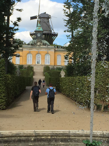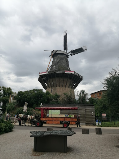 …“mill showcases a new permanent exhibition on its different levels. One part deals with mills in Potsdam´s cultural landscape (ground storey), another one with the artisan mill of the 18th and 19th century (first storey), then there is a part informing about the history of the historic mill (second storey), and, last but not least, on contemporary mills (third storey). The mill machinery can be found above the exhibition, between the fourth and the sixth level. The sixth level contains large gear wheels, which put into motion the millstone on the milling floor and the sifting machine on the meal floor. From the mill's gallery one can overlook parts of Sanssouci Park and Potsdam city.”...