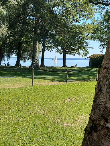 Ein schöner Ort für eine Pause beim Radfahren oder zum Baden. Im alten Bauernhof gibt es einen Selbstbedienungs- Kiosk, der eine kleinen Brotzeitauswahl, leckeren selbst gebackene Kuchen und Getränke anbietet. Der Badeplatz ist zweigeteilt: auf einer Seite sind Hunde erlaubt, auf der anderen nicht. Aktuell ist auf der Seite, wo Hunde erlaubt sind, viel Schatten durch alte Laubbäume. Auf der anderen Seite wurden leider kürzlich etliche alte Bäume gefällt. Ich finde das wegen der alten schönen Bäume schon wirklich sehr schade. Deswegen gibt es dort aber leider auch nur noch wenig Schatten. Direkt am Ufer ist der See sehr steinig, ein Stück weiter draußen im See geht es aber. An dieser Stelle ist der Chiemsee eher flach, sodass man als Erwachsener lange Zeit im See noch...