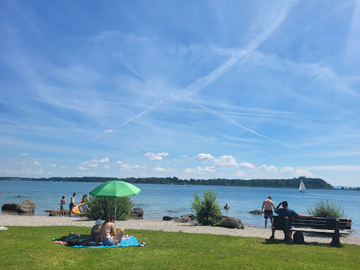 Read moreEin wunderschöner Platz zum Entspannen. Wir waren an einem sehr heißen (32°C) Samstag dort. Da wir mit dem Fahrrad ankamen hat uns der stark überfüllte Parkplatz nicht gestört. Am Kiosk kann man sich Schirme und liegen ausleihen, man kann aber auch seine eigene mitbringen. Eintritt ist frei. Die große gepflegte Rasenfläche lädt zum Verweilen ein. Zugang zum See über Kiesstrand. Ins Wasser ragen Edelstahl Handläufe un sicher ins Wasser zu kommen.