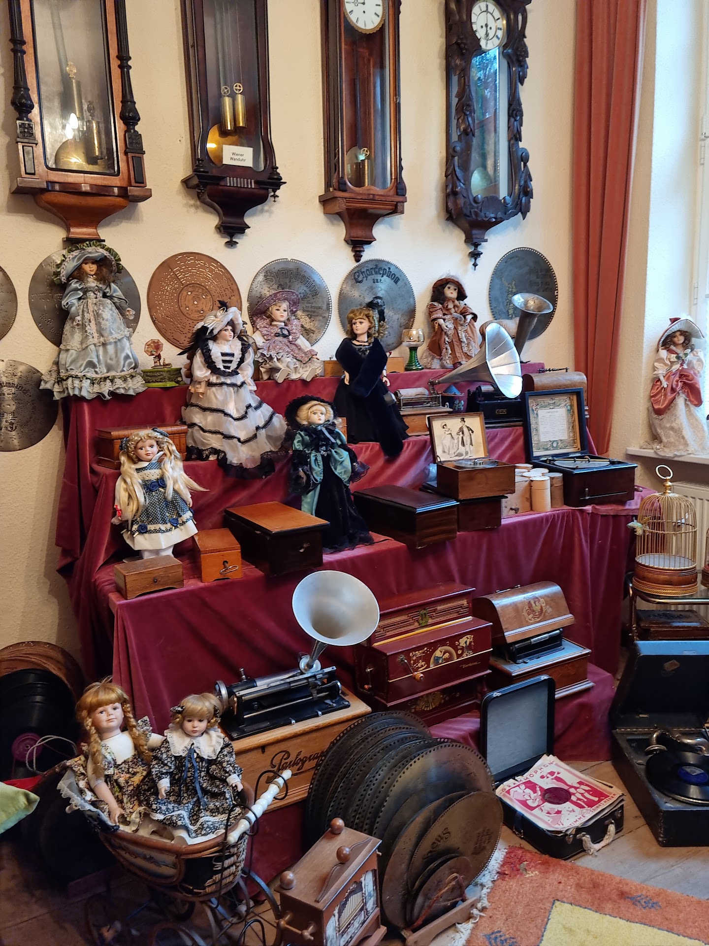 Komplettiert wir die Sammlung durch eine Vielzahl von Spieluhren, die liebevoll restauriert wurden und wunderschöne Melodien spielen. Gerade in der heutigen Zeit, in der MP3 Player und Smartphones mehr als Tausend Musiktitel spielen können erstaunt der Klangreichtum dieser mechanischen Spielwerke die Besucher.