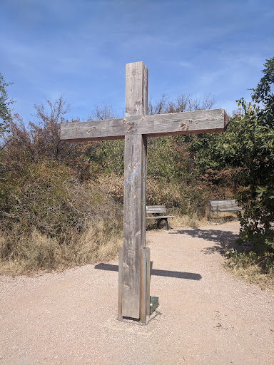 This specific Google Maps location is a lookout point along the rock wall face of the Rotenfels. At this location there is a landing with a sturdy stone fence (except for a small segment which consists of a wooden pole and a massive gap underneath that any child could fall through) with stunning views of the rest of the Rotenfels, as well as Bad Kreuznach. There is a cross in the middle of this landing, and a small tree which offers some shade, and two benches. This site takes a few extra minutes from the main walking path up to the highest point of the Rotenfels, so I certainly recommend coming here if you area already hiking the Rotenfels. I will post my review for the entire (child-appropriate) hike we did on Rotenfels below, which I already posted on the actual Rotenfels mountain location. Please see my review for "rotenfels" for more information on doing this hike with...