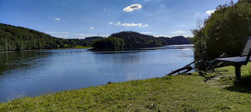 Sehr schön wenn man sich in der Natur auskennt und es allenthalben blüht und tirilliert und die diversen Gänsearten sich mit den Haubentauchern, Reihern und Kormoranen streiten - dann muß man als einzig anwesende Art der Ordnung Primates die anderen Mitglieder des Tribus Homo (sapiens?) ausblenden, wenn sie familiengruppig (Vatti schleppt das Schlauchboot, die erste Kühltasche und seine Tauchausrüstung, Mutti das Sonnenzelt, die zweite Kühltasche und die Familiennotfallausrüstung (Pflaster, Kühlpackung, Antizeck und Antimück), der Älteste schleppt das Standup-Paddeling-Board-inklusive-Paddel, die dritte Kühltasche und die Boombox, die Älteste ihr Handy und ihre eigene Boombox (mit Kontrastprogramm) und die jüngste ein Sechserpack Netto-Apfelschorle á 0,5 Liter und ihren Plüschaffen) dem Freizeitgebiet Krähwinklerbrücke zustreben - für so eine junge menschengemachte Gegend (Fertigstellung Wuppersperrengebiet Ende der Achtziger) schon sehr natürlich und bei aller technischen Uniformität auch sehr vielgestaltig und bunt - wie die Menschen, denen man bei einer Wanderung drumherum begegnet. Eine Selbsterfahrung und ein Vexierbild...