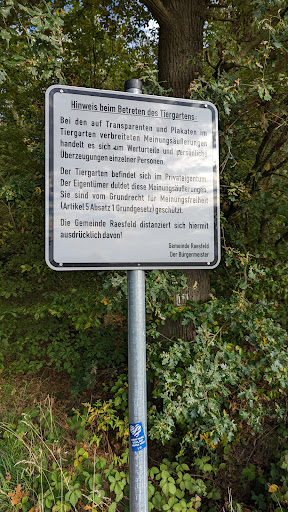 Alle Sterne für den Tiergarten und nochmal volle Sterne für den Besitzer des Geländes. Der Wald ist toll, die Tiere ebenso. Es gibt reichlich schöne Motive zum Fotografieren. Nun gibt es viele Bewerter, die die Plakat-Aktion kritisieren. Nach Jahren der Coronaerfahrung sollten nun auch diese Leute dazu gelernt haben und sollten auch mal zugeben können, dass die Corona-Kritiker der Realität schon sehr nah gekommen sind. Und da ist es doch sehr erfreulich, dass der Betreiber des Tiergartens Menschen die Möglichkeit gibt, Demokratie und Meinungsfreiheit offen zu zeigen. Danke dafür. Und ich denke nicht, dass Plakate anderer Meinung keinen Platz erhalten hätten. Es gibt nur keine, warum wohl nicht? Allerdings sollten die Plakate mal etwas gepflegt werden. Die Kritik bleibt einfach aktuell, also weiter machen! Null Sterne für die Stadt Raesfeld, die sich von dieser Aktion distanziert, somit auch von Demokratie und Meinungsfreiheit. Als öffentliche Institutionen würde ich mich da etwas zurück halten. Das dortige Schild der Stadt ist an Lächerlichkeit kaum zu überbieten. Geht hin, schaut selbst. Schloss und Wald sind einen...