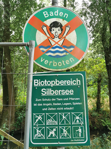 Read moreDer Silbersee in Ratingen ist ein Naturschutzgebiet und der See ist eigentlich für Schwimmer nicht zugänglich beziehungsweise Schwimmen ist hier verboten. Dies wird leider nicht eingehalten. Für den Naturschutz wird hier wirklich sehr viel gemacht, Insektenhotels und Nistkästen wohin man schaut. Leider ist es wie immer, der Mensch macht kaputt was er nur kann. An allen Stellen wo es geht wird gehalten und in den See zum Schwimmen gegangen. Weiterhin sind die vorhandenen Mülleimer nicht nur überfüllt, sondern es wird natürlich der ganze Müll daneben gestellt. Man könnte ja seinen Müll auch mal mit nach Hause nehmen. Gerade im Naturschutzgebiet, haben vor allen Zigarettenreste nichts zu suchen, meine Meinung. Ansonsten ist es ein schöner Wanderweg der immer wieder gekreuzt wird von einem Pferdeweg. ein wunderschöner Wald, gerade im Sommer eine wohltuende Abkühlung. Besonders viel Abwechslung gibt es allerdings nicht.
