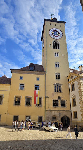 POSITIV: Historische Bedeutung: UrsprĂŒnge im 13. Jahrhundert als Patrizierhaus, spĂ€ter zum Rathaus umgebaut. Sitz des âImmerwĂ€hrenden Reichstagsâ ab 1663, erstes dauerhaftes Parlament im Heiligen Römischen Reich. Ein Ort bedeutender politischer Entscheidungen und kaiserlicher PrĂ€senz (z.âŻB. Karl V. 1532, 1541, 1546). Gestaltung: Beeindruckender Rathausturm mit riesigen UhrblĂ€ttern, dieser ist schon vom Kohlenmarkt sichtbar. Der Reichssaal mit gotischer Holzdecke, vergoldeten ZiernĂ€geln und Schnitzfiguren gilt als bedeutendstes Profanbauwerk der Gotik in Regensburg. Original erhaltene Folterkammer und GefĂ€ngniszellen im Untergeschoss, diese ist eindrucksvoll und beklemmend zugleich. Museum: Reichstagsmuseum mit Dokumentensammlung, Beratungszimmer und Fragstatt vermittelt politische Geschichte lebendig. TĂ€gliche FĂŒhrungen mit engagierten Guides, die auch auf Fragen eingehen und historische Anekdoten erzĂ€hlen. Interessant: Der Friedensbrunnen im rĂŒckwĂ€rtigen Hof ergĂ€nzt das Ensemble als Teil der Tugendbrunnen-Trios.