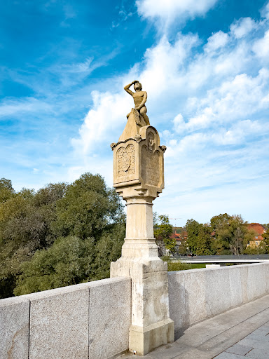 Read moreDas Bruckmandl, dass aus dem Mittelalter stammt ist ein sehr bekanntes Regensburger Wahrzeichen. Das Originalbruckmandl stammt aus dem Jahre 1446 und bestand aus Grünsandstein (diese wurde aber leider vollkommen zerstört), die zweite Ausführung aus dem Jahre 1579 wurde ebenfalls zum Teil zerstört; das Torso befindet sich heute im Historischen Museum Regensburg. Die dritte, restaurierte und jetzige Ausführung des Bruckmandl besteht aus Kalkstein, aus dem Jahre 1854, stammt vom Biidhauer Anton Blank und man kann sie jetzt wieder an der höchsten Stelle der Steinernen Brücke bewundern! Eine sehr schöne Statue, die nach Süden schaut und sich die Hand schützend vor der Sonne an...