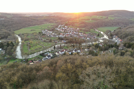 Read moreAuf einem Plateau oberhalb Siersburg gelegen findet sich die Burg Siersberg (Siersburg) bzw. das, was davon noch übrig war und wieder aufgebaut wurde. Sie haben bei klarem Wetter eine schöne Fernsicht weit ins Saarland hinein. Sollte der Turm geöffnet sein, wird die Aussicht noch etwas besser. Wer Zeit mitbringt und trockenes Wetter vorfindet, kann auch den Panoramaweg wandern und so entlang der Nied und aufwärts durch Wiesen, am St. Nikolaus-Hof vorbei und durch den Wald zur Burg gelangen. Den Weg sollte man sich vorher mittels Karte einprägen oder eine Karten-App fürs Telefon verwenden, denn die Beschilderung hat leider ein paar Lücken. Im Wald ziemlich oben kann man einen alten Lüftungsschacht finden, der ursprünglich vermutlich zum Gipsbergwerk gehörte. In den Stollen wurden auch Pilze gezüchtet. Zugänglich ist allerdings meines Wissens nichts davon, da einsturzgefährdet und lebensgefährlich. Den Panoramaweg kann man am Parkplatz bei der Niedtalhalle in Siersburg starten. Enten bitte...