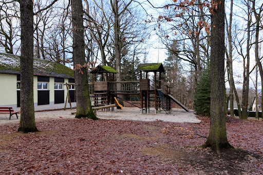 Toll angelegter Park, mit Spielplatz, Grotte und Springbrunnen, Parkeisenbahn und einem Pilz als Sitzgelegenheit. Ein kleiner Fußballplatz und eine große Wiese für...