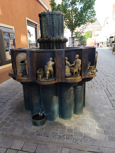 Intricately cast bronze sculptures surrounding this fountain portray historical trades and skills of the Reutlingen region. Each scene even rotates! Fabulous work of art worth seeing in this charming old section of town. Don’t miss Marienkirsche, St. Mary’s Church! The Zunftbrunnen, built in 1983 by the Aachen sculptor Boniface Stirnberg, is located on the corner ofWilhelmstraße / Oberamteistraße . He shows, in individual scenes, the 12 most economically and politically significant craft groups from the time of the guilds (after 1500). The individual scenes are also rotatable, so you can watch the scene from all perspectives. All guilds are depicted exclusively by men, since at that time women in Reutlingen could not obtain a master and could only exercise professions that were not assigned to any guild. The only woman in the fountain figures represents a customer at...