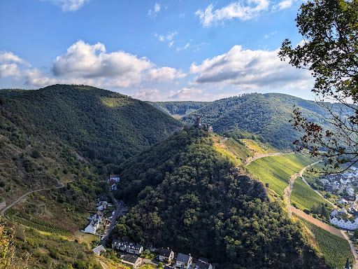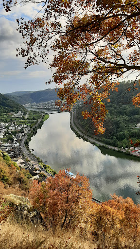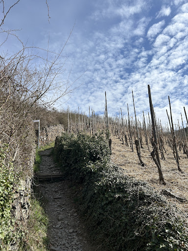 Read moreHele mooie wandeling maar oh wat is die pittig! Vanaf de parking bij de kerk vertrek je onmiddelijk via smalle paadjes de hoogte in. Je loopt veel over gebroken leisteen wat opletten geblazen is. Het zijn echt hele stijle beklimmingen en bij elke zitplek ga je graag 5min zitten. Ondanks onze fitheid. Na een korte daling kom je in het enigste dorpje wat je tegenkomt terecht. Hier snel nog wat eten en drinken inslaan. Dan vervolg je de route met een enorme stijle en lange beklimming. Het klimmen houd maar niet op. Gelukkig zijn er genoeg rustplekken onderweg. Halverwege word het wat saai en kom je geen vergezichten meer tegen. De route is hier goed begaanbaar en enigzins vlak. Dan begint het lange lange afdalen. Dat klinkt prettig maar ervaring leert dat het makkelijker is om te klimmen dan om te dalen. Zeker als het dalen maar aanhoud gaan de benen protesteren. Waar de beklimming kort en stijl was, is de afdaling lang en geleidelijk. Op het einde nog een klein klimmetje en een mooi uitzicht over de mosel. Via slechtr rotspaadjes daal je af naaf het kerkhof en ruim 13km en 4 uur later ben je weer waar je begon. Blij dat het gedaan is. Maar zeker alle moeite waard. Je moet wel een goede conditie en soepele knieen hebben. En 2 dagen spierpijn herinnert je nog wel een tijdje aan deze...