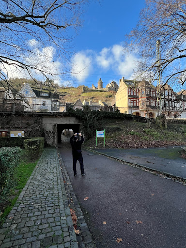 Dieser Aussichtspunkt oberhalb der Burg Stahleck ist zu jeder Jahreszeit ideal für ein gutes Foto. Ich habe hier auch schon nachts fotografiert. Man kann entweder einen steilen aber gut ausgebauten Fußweg hier hinauf laufen oder den Parkplatz am Aussichtspunkt nutzen. Ich selbst bin immer zu Fuß unterwegs, denn in Bacharach lässt sich nach jedem Schritt überall ein schönes Fotos machen. Mit einem Superweitwinkel (14mm) bekommt man sowohl Burg als auch Rheintal zusammen schön auf ein Bild. Von der Uhrzeit und dem Lichteinfall würde ich den Vormittag oder späten Nachmittag empfehlen. In der Nähe der Burg, die Straße hinauf, kommt man an einer alten Gleisstraße vorbei. Das sind in den Fels geschlagene Spurrillen für Karren und Wagen. Lohnt sich sich dies einmal anzusehen. Ist eine sehr alte Straße. Durch die Spurrillen bekommt man für die Räder der Wagen eine ebene Fläche und seitlichen Halt, damit der Wagen nicht wegrutscht auf dem Fels. Der Ort ist bei Google Maps...