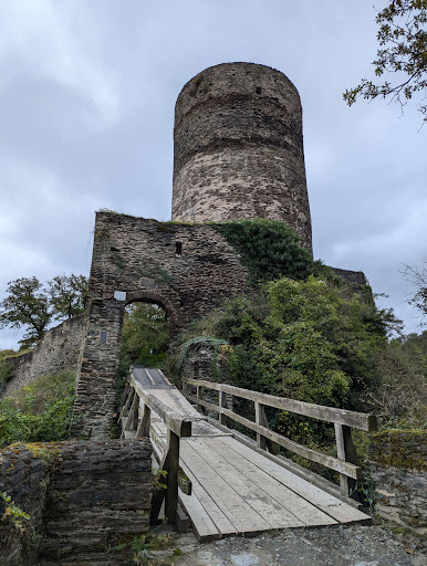 Read moreFolgt man Google kommt man an einen Wanderparkplatz unter der Burg und muss noch ein ganzes Stück den Berg rauf. Fährt man aber zur Hasen-Mühle, und da gleich rechts den geteerten (sehr schmalen) Weg hoch, geht man über einen gaaanz schmalen Weg nur kurz runter zur Ruine. Das ganze ist gut für Menschen die gut zu Fuß sind. Denn auch in der Ruine geht's bergauf, bergab. Manchmal recht schmal. Und in die Türme kommt man nicht rein, da. h. mein Hund ist durch eine Öffnung was wohl ein Fenster war rein, aber da das zu hoch für mich war, habe ich nicht sehen können wie weit runter es da ging! Ansonsten viele Sitz Möglichkeiten, tolle Aussicht und auf jeden Fall...