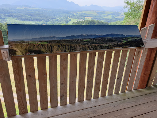 Read more60 Holztreppen steigt man empor und zwischen den Etagen gibt es viel Information über Schaubilder. Der Rundumblick fasst die Bergkette von Berchtesgaden bis Garmisch. Ein weiteres Schaubild informiert ganz oben über die Namen der einzelnen Berggipfel. Auf der anderen Seite kann man die ganze Gegend um den Simsee erkennen. 2 Fernrohre sorgen dafür, dass man sich alles genauer aus der "Nähe" anschauen kann. Das kostet übrigens nichts, vllt. muss man bei stärkeren Besucherandrang ein bisschen mehr Zeit einplanen... Unter dem Turm gibt es einen Tisch und 2 Bänke, die zum Verweilen oder Brotzeit machen einladen. Sehr sehenswert und auch über die ausgeschriebenen Wanderwege gut zu finden. Für Menschen mit Handicap bzw. eingeschränktem Gehen - - es gibt eine Straße, die bis auf die letzten 400 Metern bis zum Turm heranreicht. Der Rest muss dann über einen Feldweg...