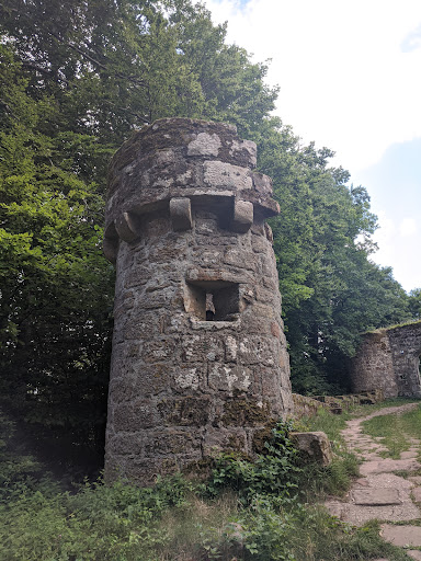This is probably one of my favorite ruins so far, and we’ve seen about 30. First of all, it’s free, unmonitored (so 24/7 access), has a large and relatively close dedicated parking lot, and has 30-60 minutes worth of exploring. E came here today as a party of 2 Adults and 3 kids (ages 5,3,.5; I wore the baby and the other two walked). The lot has tons of space, a lot of which was shaded, and two picnic tables. There is a sign over the path to the castle that you can’t miss. The trail is zig zag but fast (took the 3yo 10ish minutes to walk), but definitely not stroller friendly due to rocks, roots, and steps). There may be a stroller friendly path that we saw leaving the castle but I don’t know where it ends up. The castle itself has awesome history being from the 1200s and is just impressive to look at. It has amazing views from several locations, but particularly from the tower. The tower is actually tucked away in a place that makes it easy to miss, so keep your eye out for a dark stairwell going up and use your flashlight because the first two flights are very dark. There aren’t any picnic tables within the castle but there are plenty of rocks that served the purpose at the base of the castle. We saw many dogs and bicyclists on this warm July Monday afternoon. There was a small amount of litter but nothing crazy. There is a map on a sign and online explaining what each of the rooms was, which I recommend using. I might actually come back...