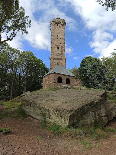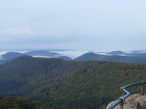 Read moreSehr schöner über 100 Jahre alter Sandsteinturm. Bevor man die Freitreppe zum eigentlichen Treppenhaus erreicht kommt man an einer Holztür vorbei die wie der restliche Turm rund um die Uhr geöffnet ist. Dahinter erwartet einen eine Besonderheit dieses Turms. Einen einladenden Raum mit Bänken und Tisch, einem Kamin mit Feuerstelle welche zum Grillen genutzt werden kann. Alles in allem in einem sehr sauberen uns ordentlichen Zustand. An der Wand eine Steintafel mit der Historie und interessanten Daten das Gebäude betreffend. Tagsüber sollte die Besteigung des Turms problemlos möglich sein da ausreichend Fenster und sogar eine Bank für eine kleine Pause vorhanden sind. In den Abendstunden empfiehlt es sich ein wenig Licht mitzubringen da der Turm ohne Strom und somit ohne Licht ist. Auf der letzten Etage von wo es über eine Stahlwendeltreppe zum Aussichtsplateau geht roch es etwas nach Urin. Dies zeigt leider wieder wie wenig manche Leute so einen Ort zu schätzen wissen. Oben angekommen erwartet einen ein grandioser Ausblick über den Pfälzer Wald. Auf der Mauer sind mehrere Markierungen mit Ortsnamen und Entfernung zur Orientierung angebracht. Definitiv zu jeder Tageszeit einen Besuch wert. Lediglich die Route von Google Maps ist etwas zu beanstanden. Man passiert den eigentlichen Parkplatz und die Route endet einige hundert Meter weiter auf der Straße im Nirgendwo. Ohne Parkmöglichkeit oder ersichtlichen Weg zum Turm. Vom eigentlichen Parkplatz weiter vorne ( mit großem Stein mit Beschriftung , Name und Infos zum Turm) muss man nur dem Holzschild zum Turm folgen. Ein kurzer relativ gut ausgebauter Waldweg mit nur leichter Steigung führt schnurgerade von...