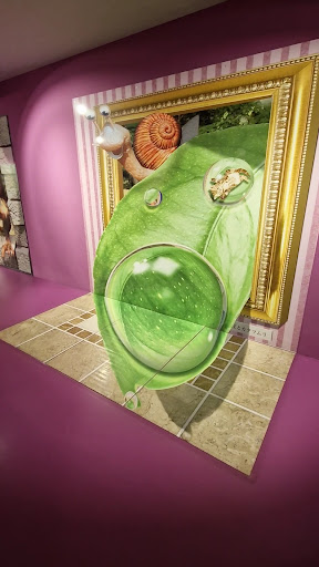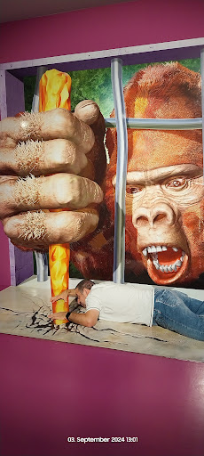 Hier mal unsere Meinung zum 3D TrickArt in Rostock. Sollte man Probleme haben zu hocken, Knien, auf den Boden setzen oder sich zu bücken.... ist man hier völlig verkehrt! Zum Eingang führt eine riesige Treppe. Dahinter ist allerdings im Haus ein Fahrstuhl. Es wird nicht vorher darauf hingewiesen das Menschen mit Einschränkungen keine Möglichkeit haben ein 3D Bild von sich zu machen oder machen zu lassen da man sich in unbequeme Positionen bringen muss! 😞 (Sehr große Menschen erst recht) Lange Wartezeit wenn man ohne Termin kommt. Man soll sich hinsetzen und soll warten ohne Angabe wie lange es dauern wird. Dann wird man zum einzigen Raum gebracht der dort als die große Attraktion beworben wird. Dort dann kurz ein paar Bemerkungen und dann durften wir uns "bespaßen". Wir waren extrem enttäuscht. 1 Raum, 25 Bilder je Bild 4 Vorschläge. Scheinbar wurden die kleinen Wandbilder mit dazu gerechnet. Einige Bilder die auf der Internetseite gezeigt werden existierten schon mal nicht. Schön wurden unsere Bilder in diesem Raum nicht wirklich. Auch nicht wenn man diese zugeschnitten hatte. Schon alleine wo eine Tür im Hintergrund war die nicht weg zu schneiden geht. No Go! 3D StreetArt wie man sie sonst kennt, war unsere Vorstellung, die einem wirklich in Erstaunen versetzt. Damit hat es hier allerdings nichts zu tun. Fazit: 12 Euro Eintritt, ca. 45 min. "Spaß" trotz vieler gemachter Bilder. Die Erkenntnis kommt dann zustande, das man sich es hätte sparen sollen. Viel zu viele Menschen im Warteraum. Alle Unternehmungen werden in einem Raum gewürfelt, bis sie zu ihren Event dürfen. Toilette übelst schmutzig. Der Weg dorthin war nur mit Schwarzlicht beleuchtet und der Damen Toilette fehlte gleich der gesamte Hinweis auf den Eingang. (Licht kaputt) Innen musste man sich überwinden das WC überhaupt zu benutzen. Echte Zumutung! Personal überfordert und ziemlich ahnungslos von ihrem Tätigkeitsbereich. Spaß und...