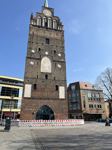 Read moreDas Kröpeliner Tor, ein Baudenkmal im Gotischen Stiel, war damals Teil der Stadtbefestigung und diente zur Verteidigung. Durch die 2 Stockwerken war es eines der gewaltigsten Tore in Rostock. Um 1400 entschied man sich, das Tor auf 6 Stockwerke aufzustocken um den Handelsreisenden die Größe und die Bedeutung der Stadt zu demonstrieren. Auf Grund seiner repräsentativen Gestaltung wurde das Tor nicht abgerissen. Im Jahr 1905 wurde der Greif in der Spitzbogenblende eingefügt. Bis 1960 führte eine Straßenbahnlinie durch das Tor. Die Eröffnung des Tores als Kulturhistorisches Museum fand am 11. Juni 1969 statt. Aus dieser Zeit stammt auch die Verglasung der Bögen. Es werden Führungen rund um das Kröpeliner Tor oder Stadtführungen angeboten. Aktuell ist die Geschichtenwerkstatt hier untergebracht und zeigt eine Dauerausstellung zur Geschichte der Rostocker Stadtbefestigung mit wechselnden Ausstellungen zu zeitgeschichtlichen Themen. Zur Zeit ist das Tor wegen Schäden an der Fassade gesperrt, ansonsten kann man bis hoch in den Turm und alles...