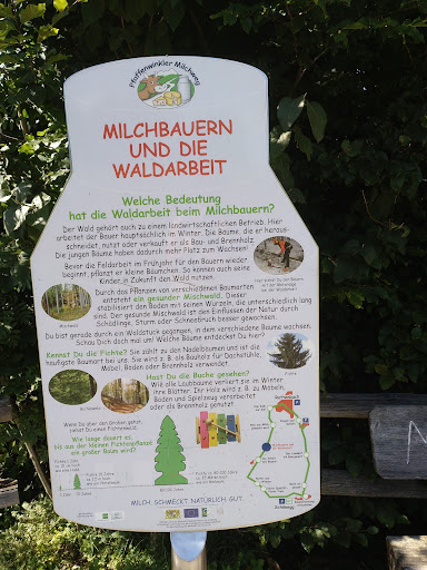 Read moreAn sich ein schöner gemütlicher Spazierweg auch mit Kinderwagen ohne größere Probleme zu machen. Es gibt 10 Stationen in denen die Milchwirtschaft in der Region erklärt wird. Zum Teil auch mit Mitmach-Stationen (Glocken-Orgel, Balancierbalken, Seilrutsche, Memory uvm.). Am Start / Ende des Weges, den man im oder auch gegen den Uhrzeigersinn gehen kann, ist ein schöner Hof mit Schaukäserei, Brotzeit -/ Kuchenverkauf und großem Spielplatz. Es gibt viele Sitzmöglichkeiten drinnen wie draußen. Einziger Nachteil ist, dass der Weg auch in verschiedenen Navis als Anfahrtsstraße zum Parkplatz angegeben ist, was an Sonn- und Feiertagen mit großem Andrang auch zu viel Verkehr führt. Dazu kommen dann noch teils rücksichtslos fahrende Radler, die dann meckern, das die Kinder nicht am Rand gehen. Aber man wird, trotz dieser kleinen Einschränkungen, dafür mit schöner...