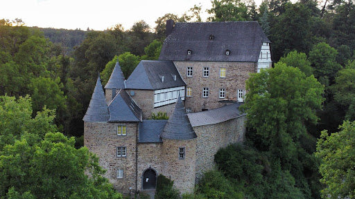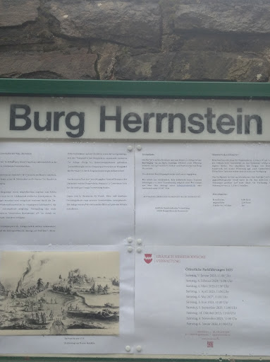Herrnstein Castle dates back to a simple fortified house built around 1300, which was owned by Messrs vam Steyne (vom Stein). The huys zome Steyne was first mentioned in a contract dated November 15, 1370, according to which Johann von Stein received it as a fief from Count Wilhelm II von Berg . The castle then developed into a Rhenish hill castle through multiple conversions and additions . Around 1800 significant parts of the plant were removed and rebuilt. Further building measures up to the 19th century gave it its...