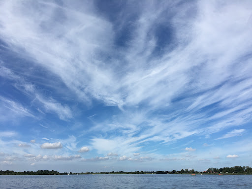 Das Große Meer bietet eigentlich für jeden etwas. Camping, Wassersport, Radfahren, wandern oder einfach nur entspannen. Der Campingplatz und die Ferienhaussiedlung befinden sich am nördlichen Ende vom GM. Motorboote dürfen das Gewässer nicht befahren und der südliche Teil ist Naturschutzgebiet. Für Windsurfanfänger finden sich, in dem hüfttiefen Gewässer, traumhafte Bedingungen. Eine Surfschule ist auch gleich vor Ort. Weiterhin sind hier auch 2 Segelvereine ansässig und es gibt einen kleinen Hafen mit Liegeplätzen. Allerdings ist das Segelrevier hier nur für Boote mit geringem Tiefgang geeignet. Der Badestrand ist super für Familien geeignet weil das Wasser hier weit hinaus nur sehr flach ist. Für Vierbeiner ist der Badestrand tabu! Dafür wurde aber etwas südlicher, auf der Landzunge beim Campingplatz, extra eine Hundewiese am Wasser ausgewiesen. Mit dem Fahrrad kann man schöne Touren durch die Meeden unternehmen. Empfehlenswert ist auch der Rundkurs 3-Meere-Weg, dieser führt am Großen Meer, Loppersumer Meer und der Hieve vorbei. Dabei muss man unterwegs 2 Wasserwege mit einer Pünte (handbetriebene Fähre) überwinden. Auch in der Ferienzeit ist es hier nicht überlaufen und man kann herrlich entschleunigen. Lediglich an den Wochenenden ist es hier bei schönem Wetter etwas voller weil dann auch wir Ostfriesen gerne diesen Ort aufsuchen. Aber keine Angst wir beißen nicht! Wir wohnen halt da wo ihr gerne...