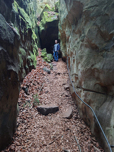 Read moreVorig jaar 2021 hebben we met de kleinkinderen het DINOPARK bezocht. Heel mooi aangelegd, het lijkt wel of de dino's hier echt leven. Je wandelt door een NATUURLIJK landschap. De kleinkinderen vonden het zelfs mooier dan een ander dinopark, omdat hier de dino's RUSTIG zijn en je niet doen schrikken door hun gebrul. Nu wilden we TEUFELSSCHLUCHT bezoeken. Op de PARKING viel het al op dat het veel drukker was dan in de zomer van 21, de meeste bezoekers kwamen wel voor het dinopark. Tussen de SPELONKEN was het rustig wandelen, klimmen en afdalen. De RONDWANDELING is goed aangeduid. Je hebt 3 verschillende NIVEAUS. Meestal komt het erop neer dat je kan kiezen om bv tussen de rotsen te lopen of langs het pad. Het is NIET geschikt voor KINDERWAGENS of ROLSTOELEN. Eén moedige mountainbiker passeerde ons, maar hij moest zijn ijzeren ros meestal dragen. Hij had het ook moeilijk om door een smalle doorgang te geraken (soms kun je niet anders). Heel INDRUKWEKKEND stuk natuur. Te bedenken dat het hier vroeger allemaal ZEE was! In de IJSTIJD is het water bevroren en toen werden de rotsen gespleten. Hier en daar zie je uitleg over hoe alles ontstaan is; je kunt ook een AUDIOTOUR volgen. Die kun je opladen via je smartphone. Wij hebben dat gedaan in het Dinopark en bij ons ging het niet zo vlot. In het Teuffelsschlucht vonden we dit niet nodig. In het Dinopark kun je de EVOLUTIE van de AARDE volgen, je loopt er door een immens SLAKKENHUIS dat de verschillende geologische tijdperken voorstelt. De periode waarin de mens leeft, stelt slechts één dag voor in het lange bestaan van de aarde. Uiteindelijk beland je in de TOEKOMST waarin er GEEN MENSEN meer zijn. De wereld overleeft ons wel en er verschijnen weer dieren. Ikzelf ben 60 en wandel met STOKKEN. Ik wilde er persé naartoe en ben blij dat ik geweest ben, maar het was LASTIG. We kwamen ook een FAMILIE tegen met KLEINE KINDEREN; ze vroegen of we het pad wisten zijn met het lichtere niveau. Dit volgden we echter al... Ons HONDJE stapte wel dapper mee. Ook interessant om weten: dit...