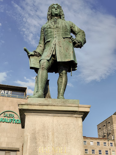 Read moreUbicada en la plaza principal del casco histórico de Halle, Markplatz, esta estatua rinde homenaje al vecino más ilustre de la ciudad, Georg Friedrich Händel, nacido el 5 de marzo de 1685 a poco más de 300 metros. Erigida en 1859, con ocasión del centenario de la muerte del compositor, es el único monumento en su recuerdo que encontramos en toda Alemania. Situada frente a la iglesia en que se bautizó Händel, nos muestra al compositor en traje de época, mirando hacia Londres, su hogar adoptivo, apoyado en un atril en el que descansa una partitura de El Mesías. Fundida en bronce, pesa 1.500 kilogramos y tiene una altura de 3,2 metros, estando sustentada por un pedestal de mármol de 19 toneladas, en el que están representadas varias figuras alegóricas, así como la leyenda “1741”, año en que compuso su principal obra, El Mesías. En la parte frontal puede leerse la inscripción “Haendel 1685-1759”. Magnífico monumento en un entorno histórico, en el que es obligado detenerse...
