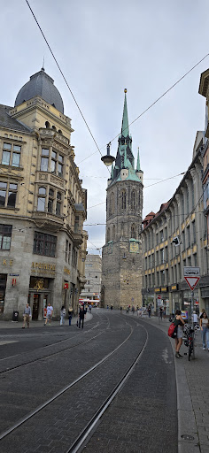 Read moreDer Rote Turm in Halle (Saale) ist ein faszinierendes historisches Bauwerk, das mit seiner markanten roten Ziegelfassade sofort ins Auge fällt. Er wurde im 15. Jahrhundert erbaut und diente ursprünglich als Teil der Stadtbefestigung. Der Name „Roter Turm“ leitet sich von den verwendeten roten Ziegeln ab, die dem Turm sein charakteristisches Aussehen verleihen. Heute ist der Turm ein beliebtes Wahrzeichen und bietet einen beeindruckenden Blick über die Stadt. Die Kombination aus Geschichte und Architektur macht den Roten Turm zu einem lohnenswerten Ziel für Besucher, die mehr über die Vergangenheit von Halle erfahren möchten. Ein Spaziergang rund um den Turm ist eine wunderbare Möglichkeit, die Atmosphäre der Stadt...