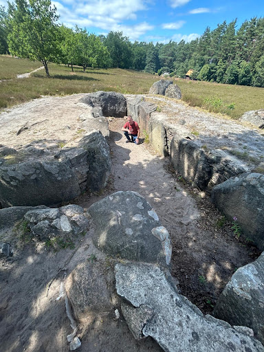 Read moreDIE MYSTISCHE OLDENDORFER TOTENSTATT 🥾🐾 Die Oldendorfer Totenstatt ist ein Ensemble von sechs Grabhügeln und Megalithanlagen in Oldendorf/Luhe nördlich von Amelinghausen, im Landkreis Lüneburg/Niedersachsen und eines der interessantesten Steingräber der Heide.. Mit ihrer 4000-jährigen Vergangenheit als Bestattungsfeld ist sie immer wieder ein Anziehungspunkt für Bürger und Gäste aus Nah und Fern. Im Morgennebel oder bei Sonnenuntergang wirkt sie besonders geheimnisvoll und mystiscch. Unsere insgesamt knapp 10km lange Wanderung beginnt in der ersten Morgendämmerung am Wohnmobilstellplatz Lopausee. Sie führt uns über gut begehbare Waldwege an der Kronsbergheide vorbei zur Totenstatt, die morgendlichen Nebel fast schon gespenstisch...