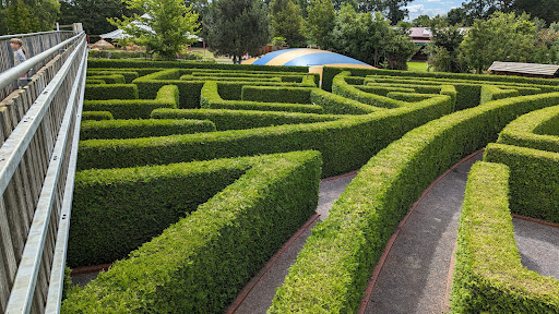 PS: Der Ausgang des Irrgarten ist eine Brücke, dazu muss man den Kinderwagen hoch und runter tragen. Wir hatten ohnehin nicht alle Rätsel auf dem Hinweg gefunden und sind mit dem schlafenden Kind im Wagen dann zurück zum Eingang, mein Tipp für...