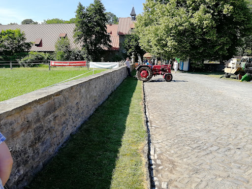 Hier hatte an einem Sonntag, bei herrlichen Wetter, das 1. Treckertreffen auf Schloss Münchhausen mit Kinderaktionen und Vorführungen, stattgefunden (siehe Fotos).