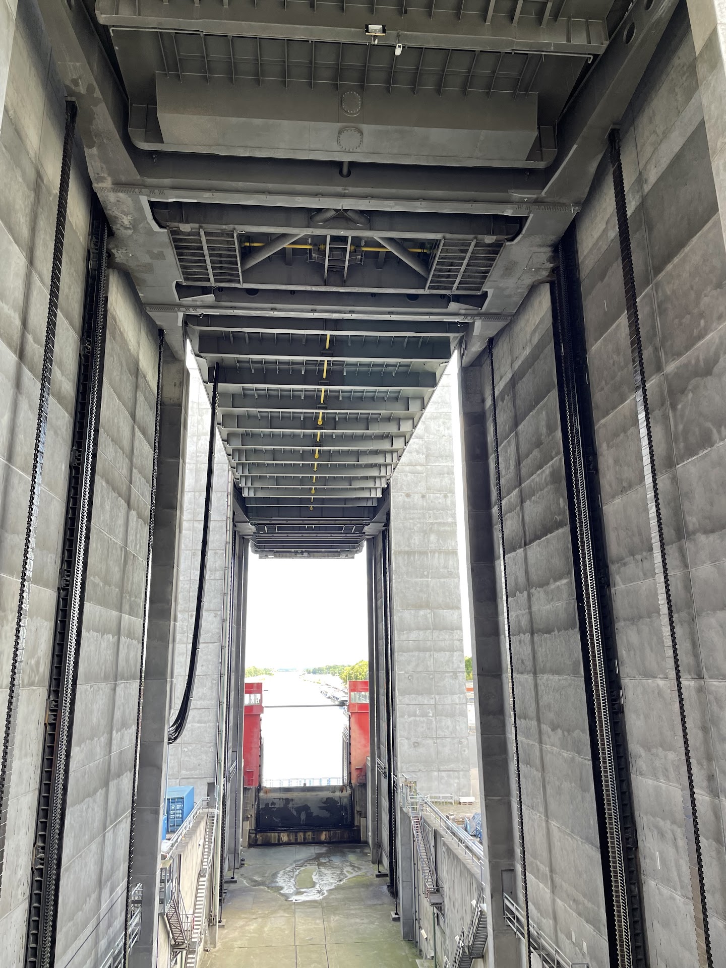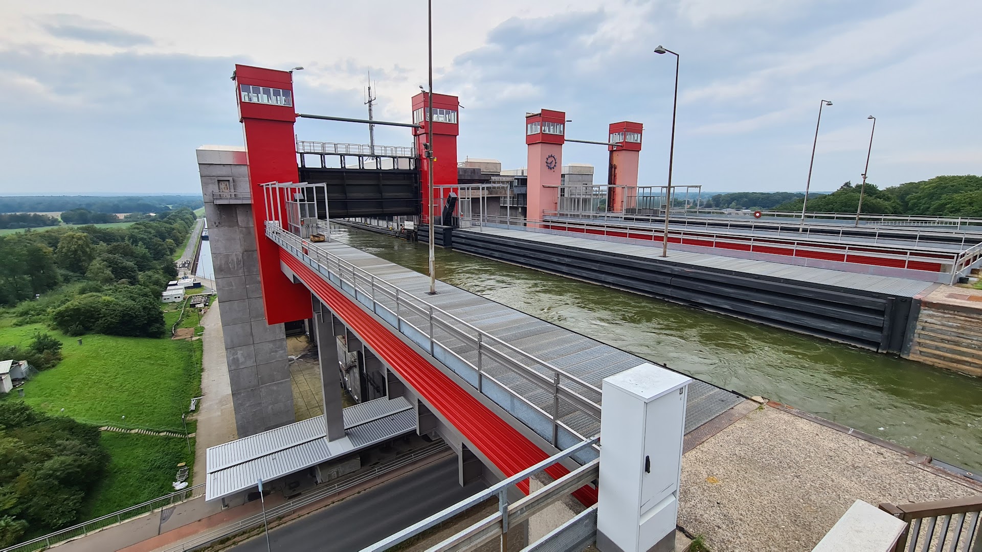 Read moreIn Scharnebeck ten noorden van Lüneburg is een schepenlift uit de jaren 70. Het is een verbinding tussen de Elbe en het achterland. Niveau verschil 38 m. Er is een museum waar je voor moet betalen, het bekijken van de 2 schepenliften vanaf het bezoekersplatform is gratis. Heel veel kabels en 4 wormwielen plus dubbele sluisdeuren zorgen er voor dat de enorme bak met water en schepen omhoog en omlaag gaat. Indrukwekkend wanneer je bak omhoog ziet gaan en boven je hoofd ziet verdwijnen om de schepen in het kanaal...