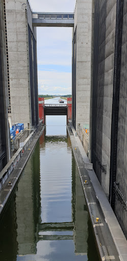 Great opportunity to see the largest boat lift in the world in action. Twin canal troughs 100m long raise fully filled barge (one in each) 38m from lower to upper canal levels (or reverse of course). Freely visible at lower level from road, also viewing platform accessed via 171 steps to view from upper level. Museum with working models, history & technical information (no translations all in German). Toilet, open daily till 3.30pm, all free. Parking access through...