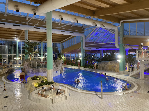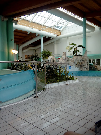 Read moreVorab-unter einem Erlebnisbad verstehe ich was anderes und dafür, dass es als Hotelgäste ermäßigte Ticketpreise geben soll, war es obendrein für das gebotene Schwimmbad überteuert. Wir sind mit den Kindern oft im Urlaub und dementsprechend in vielen Schwimmbädern, aber dieses Bad war das bisher schlechteste! Es gab 3 Becken, einmal ein Wellenbecken und dann noch eins innen und ein Außenbecken,alle nicht sonderlich groß. Einen kleinen Whirlpool und ein extrem kleines Babybecken mit sehr wenig Wasser. Das Wasser hat eine recht kalte Temperatur. Es gab 2 Rutschen. Auf beiden Rutschen Schilder mit den Regeln und ein Verbot für Kinder unter 8 Jahren alleine zu rutschen, also unter 8 nur mit Erlaubnis der Eltern! Darauf wurde vom Personal allerdings nicht geachtet und die Eltern schien das ebensowenig zu interessieren. So nahm das Unglück seinen Lauf. Ich wollte mit meinem 5 jährigen Sohn rutschen, vor uns mehrere Kinder unter 8 Jahren. Der Junge vor uns war noch kleiner als unser 5 Jähriger. Als er rutschte wartete ich bis die Ampel zum Rutschen auf grün wechselte und sogar noch ein bisschen länger bis wir losrutschten. Wir rasten dann mit hoher Geschwindigkeit die Rutsche runter, als ich plötzlich nach der "Kurve" den kleinen Jungen in der Tunnelrutsche sah. Ausweichen ging da natürlich nicht, also versuchte ich mein Gewicht zu verlagern,meinen Sohn irgendwie zu schützen und gleichzeitig den kleinen Jungen vor einem allzuharten Aufprall zu bewahren. Fehlanzeige! Der Junge bekam meinen Ellenbogen voll vor den Kopf und hat meinen Sohn dabei zusätzlich so einen Kopfstoß verpasst das die Lippe platze und das Blut spritzte. Fazit-beide Kinder verletzt. Ich packte das fremde Kind am Arm und zog es mit aus der Rutsche damit der nächste ihn dann nicht noch heftiger verletzt und übergab das Kind seinen Eltern. Dann suchten wir das Aufsichtspersonal welches an einem anderen Becken zu zweit quatschend stand. Meinem Sohn lief das Blut über das Kinn,den Hals und die Brust. Die Lippe mittlerweile schon aufs doppelte angeschwollen. Wir wollten die Damen dann nach einem Kühlakku fragen,allerdings schauten sie nur kurz zu meinem Sohn und drehten sich dann weg um sich ihrem Gespräch weiterzuwidmen. Das war dann der Punkt an dem wir das Schwimmbad verlassen haben um uns um unseren Sohn zu kümmern. Fazit: Schwimmbad hat nicht viel zu bieten, ist zu teuer, der Bodenbelag ist sehr rutschig, das Wasser sehr kalt und Sauberkeit wird auch nicht groß geschrieben. Zudem hat man keine Möglichkeit dort Getränke oder Snacks zu ordern und das Aufsichtspersonal ist kaum vorhanden und desinteressiert. Also viel...