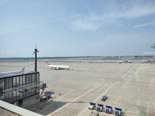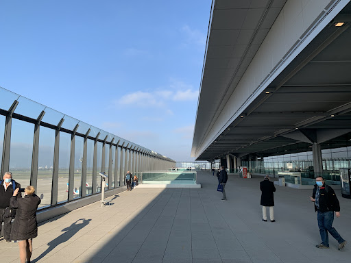 Einen Stern für die Besucherterrasse zu vergeben, fällt uns schwer, da leider die negativen Aspekte überwiegen - leider ! Wer unter "Besucher"-Terrasse gedanklich eine AUSSICHTS-Terrasse erwartet, wird völlig enttäuscht werden - es ist wirklich nur eine "Besucher"-Terrasse. Jedoch willkommen als Besucher kann man sich hier irgendwie nicht fühlen. Dies geht beim Eintritt bereits schon los. Nicht-App-Nutzer zahlen - egal welchen Alters - einen absurden Extra-Aufschlag von 2 Euro pro Nase. Dabei auch einen Eintritt von 3 Euro selbst für Kinder unter 6 Jahren zu verlangen, ist für die gebotene Leistung in keinster Weise angemessen. Mit Klnderwagen oder für Gehbeinderte ist der Zugang schwierig, wenn die 2 Fahrstühle (so wie an unserem Besuchstag) nicht in Funktion sind. Weniger fitte Personen sollten einen Besuch der Terrasse ohnehin meiden, da es dort keinerlei Sitzmöglichkeiten gibt. Diese hat man bei der Planung schlichtweg vergessen. Ebenso hat man bei der Terrassen-Planung DAS Allerwichtigste bei der Beobachtung des Flugbetriebes vollkommen außer acht gelassen: man kann von dieser Terrasse KEINE der beiden Start- und Landebahnen vollständig einsehen. Somit bleibt dem wissbegierigen Besucher die Sicht auf die kompletten Start- und Lande-Vorgänge der Runway's verwert. Vielleicht bezeichnet nennt man die Terrasse deshalb auch nur "Besucher-Terrasse" und nicht "Aussichtsterrasse" ? Ein bekannter Flieger-Spruch lautet: "Fliegen heißt Landen" - diesen Vorgang kann man von der Terrasse nur beobachten, wenn die Flugzeuge die Runway's von Westen aus anfliegen - sonst sieht man nur das Abheben. Das man mit dem Erwerb der Eintrittkarte an die Grenzen des gebuchten 90min-Zeitfenster halte ich u.a. auch mangels Sitzgelegenheiten eher für unwahrscheinlich. Aus selbigem Grund wird die Terrasse daher zu üblichen Besuchszeiten nie völlig ausgebucht sein. Einziges Besuchs-"Schmankerl" ist, dass man auf dem Weg zu und von der Terrasse den Abflug-Bereich mit duty-free-Zone und Sicherheitskontrollen überquert und das Gewusel der Abreisenden beobachten kann - wer es denn mag. Wir konnten dieser Sache jedoch nix abgewinnen. Insgesamt sind wir von dem Konzept der Besucherterrasse sehr, sehr enttäuscht. Dies ist mehr als verbesserungswürdig.