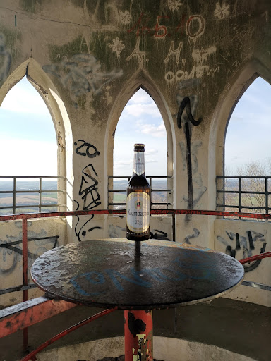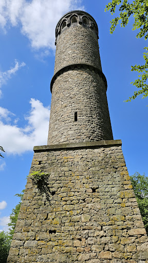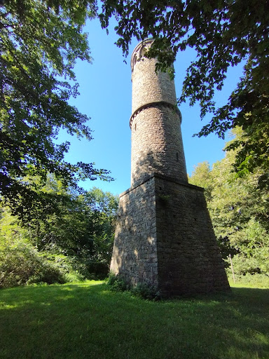 Wie schafften die Erbauer es denn bloß damals ihre Sachen hier rauf zu bekommen?Da die Wanderstrecke, die aus Richtung Friedhof herführt, zum Schluss eine unglaubliche Steigung aufweist empfehle ich wirklich nur das Nötigste mitzunehmen. -- -- Für den dunklen Turmaufstieg ist eine Taschenlampe empfehlenswert , selbst an Sonnentagen kommt da fast kein Licht rein. VORSICHT!: -- -- Zum Schluss des Treppenaufstiegs stößt man sich sehr schnell den Kopf! Die Etagenplatte ist sehr dicht über der letzten Stufe eingelassen !! Am 06.11.1840 erteilte Leopold ll. (auf Anregung des Amtes Schieder) die Anweisung, auf diesen Berg einen rund 80 Fuß hohen Turm zu errichten. Der Turm wurde nicht für strategische Zwecke gebraucht, ist nicht für eine Verteidigung-war schließlich schon 1840! Es ist sehr wahrscheinlich, dass neben den tatsächlichen repräsentativen Zwecken hier eine Arbeitsbeschaffung -so was gab es tatsächlich damals schon!-für die Bevölkerung das Ziel war...! Der Turm ist optisch dreigeteilt, besteht aus Bruchsteinen. Das untere Drittel ist ein quadratischer, nach oben verjüngender Sockel. Der westliche Eingang schließt nach oben mit einen gotischen Spitzbogen ab. Über dem Eingang ist das fürstliche Wappen. Über dem Sockel ist der runde Turmkörper auf halber Höhe mit abstrakt geometrischen Fries dekoriert. Oben ; zwölf Fenster im gotischen Stil. Das Dach ist ein flaches Kegeldach aus Zinkblech. In der Fassade sind Belichtungsöffnungen zum Treppenhaus mit der 101-stufigen...