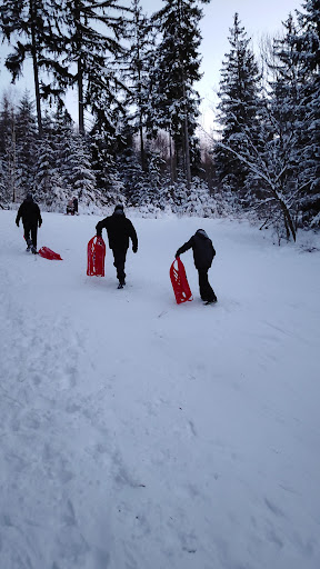Kleine Rodelbahn für die kleinen mit Schlittenist sogar kostenlos und völlig ausreichend für Spass.