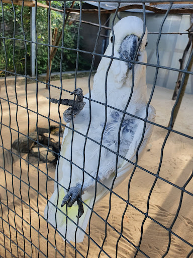 Als wir dann endlich die Tiere gefunden hatten, waren wir überrascht das es nicht nur Vögel waren wie erwartet sondern ziemlich durchmischt als eher ein Tierpark. Uns kam es so vor als ob die Tiere nicht ausreichend Rückzugsmöglichkeiten hatten und die Käfige waren alle sehr klein gehalten und teilweise Tiere in Einzelhaltung die eigentlich in Gruppenhaltung gehören. Dann doch bitte die Käfige größer gestalten mit Rückzugsmöglichkeiten und artgerechter Haltung dafür dann weniger "Auswahl".
