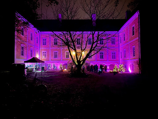 Живу рядом,был во дворе,такое историческое место,но не облагороженные,раньше было страшно заходить на двор там были собаки,а так очень интересное место,там есть дом напротив кладбища красивый кусочек той эпохи,но позаброшен,сейчас вроде как бы есть кое-какие подвижки,поеду посмотрю прямо сейчас как там и что. Посмотрел и вижу,что много сделано уже,отреставрирован дом подальше в очень дивном внутреннем лесу с много вековыми дубами,липами,буками краснолистными,двор самого замка от центрального входа не реставрирован,а реновирован,внутри какой-то склад или там,есть туалет,рядом кафе,если объехать замок с другой стороны,то там есть часовня на въезде и красивая аллея с много вековыми каштанами и липами,всё красиво и спокойно,посетителей немного,так как там внутри...