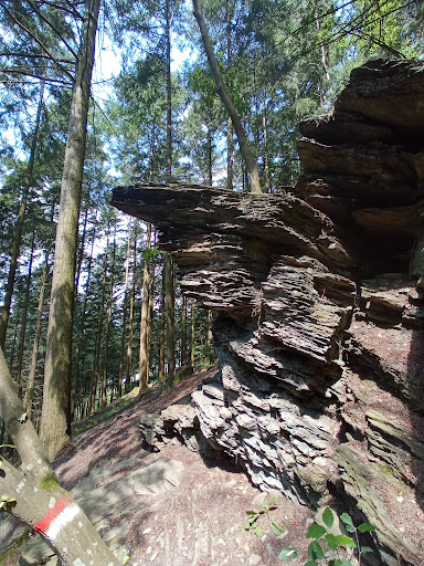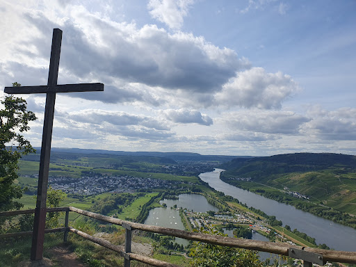 Read moreLastig te vinden, verwacht geen echte klettersteig, eerder zware rotsige klim naar prachtig uitzichtspunt! Route: loop vanaf de parkeerplaats langs de moezel tot het speeltuintje waar dit bordje staat. Daar rechts het bos inlopen. Hier het rechterpad langs het beekje volgen het bos in. Na een tijdje kom je bij de uitleg over de klettersteig. Hier ga je via het linkerpad omhoog de rotsen op en is de route goed aangegeven met rood/wit op bomen en stenen. (R14) Zo de weg naar de top met prachtig uitzicht. Terugweg kun je bordjes volgen naar de camping en als tip dan nog fijn rodelen als beloning en eten bij restaurant...