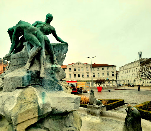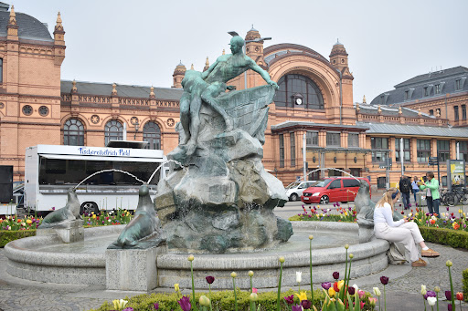 "Rettung in Seenot" heißt dieser Brunnen. Die Bronzeplastiken stammen von Hugo Berwald (Künstlername: Hugo Berwald-Schwerin; geb.: 10. Februar 1863 in Schwerin; gestorben: 14. Februar 1937) er war ein deutscher Bildhauer. Errichtung und Einweihung dieses Brunnens war am 03.10.1911. Weitere Infos über den Rnthalplatz: Zur Erinnerung an die Lehrerin Marianne Grunthal, die von SS-Männern am 2. Mai 1945 ermordet und an einem Laternenmast erhängt, wurde, trägt der Schweriner Bahnhofsvorplatz die Bezeichnung Grunthalplatz. Den Ausruf von der Lehrerin Grunthal, die zu der Nachricht von Hitlers Tod gehört hatte, äußerte: „Gott sei Dank, dann gibt es Frieden!“ Schreckliche Geschichte, aber da weiß man den Hintergrund dieses Platzes. Der Brunnen hat einen schönen Hintergrund mit dem schönen Bahnhof. Finde ich richtig toll. This well is called "Rescue in distress". The bronze sculptures are by Hugo Berwald (artist name: Hugo Berwald-Schwerin; born: February 10, 1863 in Schwerin; died: February 14, 1937) he was a German sculptor. This well was erected and inaugurated on October 3rd, 1911. More information about Rnthalplatz: In memory of the teacher Marianne Grunthal, who was murdered by SS men on May 2, 1945 and hanged from a lamppost, the Schwerin station forecourt is called Grunthalplatz. The exclamation from the teacher Grunthal, who heard the news of Hitler's death, uttered: "Thank God, then there will be peace!" Terrible story, but you know the background of this place. The fountain has a nice background with the beautiful train station. I think it's...