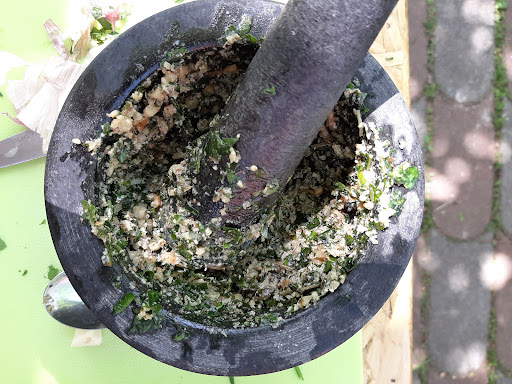 Read moreAuch für Nicht-Vegetarier und „Normalköstler“ eine schöne Erfahrung, Blätter am Wegesrand zu sammeln und dann unter fachkundiger Anleitung der Kräuter-Heidi ein leckeres Büffet zu erstellen mit Salaten, gebackenem Brot, gemörsertem Pesto, selbstgemachten Getränken und einer feinen Nachspeise in geselliger Gruppe zu erstellen und dann auch zu verzehren! Eine absolute Empfehlung für kleine Gruppen zu einem schönen Tag am...