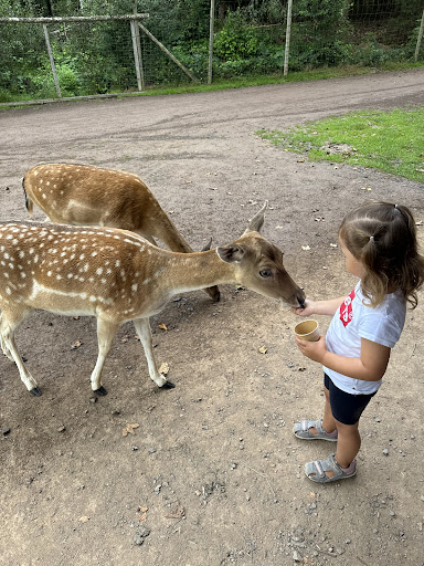 Is a great day trip destination. You can rent at the entrance simple handcarts and there are two round tours with different difficulty, we did the smaller one and it was perfect for us. The road in this one is good enough for a normal baby stroller. Along the paths are playgrounds, picnic areas and benches to rest. We loved the raccoons 🦝 the wolfs 🐺 and the platform to look at them, as well as the areas where the deers were able to roam and approach the visitors. Special food for the deer, goat and ducks can be bought in dispensers for 2€ And almost at the end of the tour you find a container to buy food and drinks with tables and sunshades, a big playground and a big sandbox with view of the lake. We loved it and will visit again...