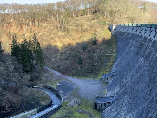 Read moreWir hatten einen schönen Ausblick von der Staumauer erwartet, wurden aber insofern enttäuscht, da ein ca. 2 Meter hoher grüner Gitterzaun die Aussicht zum aufgestauten Wasser nicht gerade zu einem Genuss machte. Vom Wanderparkplatz aus ist es noch ein ganzes Stück bis zur Staumauer und die Strecke verläuft grösstenteils auf der Landstraße ohne Seitenstreifen/Randstreifen bis zur nächsten kleinen Bauernschaft und dann weitere Strassen entlang bis zum Wald. Im Wald die zweite Abzweigung links nehmen und nach 3 Serpentinen steht man dann vor der Staumauer. Dort steht dann auch eine Bank ohne Abfalleimer. Die Beschilderung war eher selten und manchmal auch nicht ganz so eindeutig. Teilweise so ungefähr Postkartengrösse. Ab ca. 10 Uhr wird es dann auch nach und nach eher voll, in der Zeit davor war es so gut wie menschenleer. Kleiner Tipp: Auf Mountainbiker achten, es wird dort nicht immer zur Warnung geklingelt. Ansonsten aber wunderschöne...