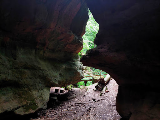 Eine sehr tiefe Schlucht des hier auch entspringenden Hatzelbaches (Quellschlucht), tief in den Sandstein gegraben, eher tief denn lang, wie der Name andeutet. Angesichts dessen ist der Wasserlauf, jedenfalls als ich dort war, geradezu winzig. Den angekündigten feuchten Schluchtwald mit Moosen und Farnen, etc. konnte ich irgendwie nicht erkennen. Vielleicht war März hierfür auch weniger geeignet, weiß nicht. Der Weg nach unten ist gut ausgebaut und die Laufrichtung ist durch Beschilderung auch in etwa vorgegeben, so dass der Besucherstrom, der am Wochenende schon größer sein kann, einigermaßen reguliert ist. PS: Gegenüber dem Wanderparkplatz, wo man als Autofahrer wahrscheinlich parkt, gibt es eine eindrucksvolle (Schnittlinger) Eiche am Spielplatz (die von Google Maps bislang völlig falsch...