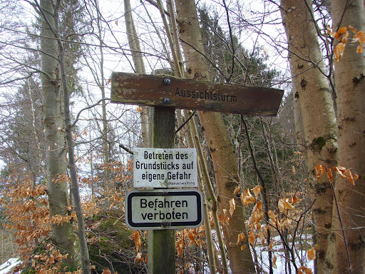 Eine tolle Aussicht, bei Föhnwetter kann man die Alpen deutlich erkennen. Um nach oben zu kommen muß man schon ein paar Treppenstufen steigen. Es stimmt das innen ein paar „ Schmierereien“ an den Holzwänden stehen, aber es sind auch witzige dabei und das Lesen erleichtert d n Aufstieg. Nachts ist der Turm verschlossen, denn er wurde leider auch schon als Sprungturm 😥 benutzt, das bezeugen die dort aufgestellten Grablichter. Ein Fernglas und eine Kamera lohnen sich auf jeden Fall...