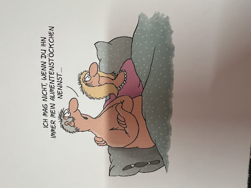 Ansonsten jedoch macht das „Museum“ den Eindruck, als sei es irgendetwas sehr Unentschiedenes zwischen Buchladen für Titanic-Illustratoren und drei Verkaufsgalerie-Räumen, von denen zwei für uns zumindest keinen erkennbaren Bezug zu skurrile Kunst hatten, sondern Landschaftsmalerei bzw esoterische Kunst zeigen und einem großen Raum mit wirklich lustigen und durchaus sehenswerten originalen Bildern, wie sie auch öfter in Satiremagazin zu finden sind.