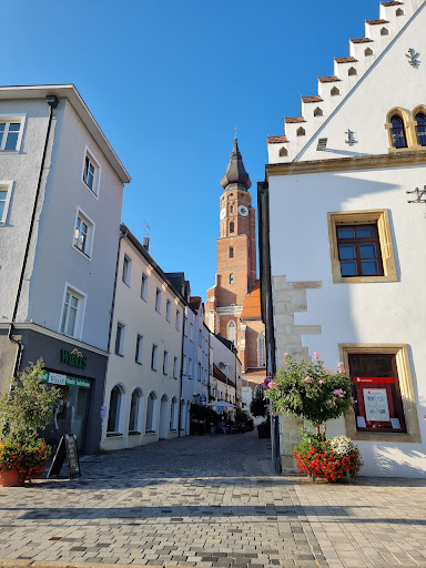 Der Besuch der größten der vielen Straubinger Kirchen ist ein Muss. Schon beim Eintreten ist man überwältigt von der Konstruktion des Innenraumes. Ich hatte vorher selten einen Altarraum gesehen, der durch ein Gitter von einem umlaufenden Wandelgang getrennt ist. Zudem fällt sofort die reichlich verzierte Kanzel ins Auge. Auch ungewöhnlich sind die weit mehr als 10 Seitenaltäre, die alle wunderschön mit Wandmalereien und Bildern ausgeschmückt sind. Ein weiterer Blickfang sind die bleiverglasten Kirchenfenster. Hiervon gibt es hinter dem Altar auch ein...