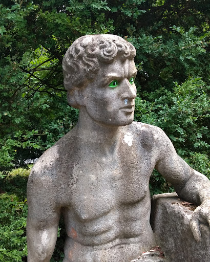 Athena was produced without a mother and emerged full-grown from Zeus’s forehead. Here we are seeing Athena standing on top of his head. On the right is Prometheus and on the left is Pandora along with her box. Unfortunately the spear, that would make Athena complete, is missing. However I am glad that there’s something beautiful adorning the grove. It’s also a little bit high and it takes a little while...