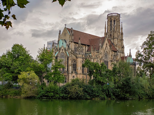 Read moreEsta bonita iglesia se encuentra en uno de los rincones más idílicos de Stuttgart, Feuerseeplatz, a 20 minutos a pie del centro histórico, una plaza ocupada prácticamente en su totalidad por un estanque y presidida por la imponente mole de la Iglesia de San Juan, construida en estilo neogótico entre 1866 y 1876 y casi completamente destruida en 1944, durante la II Guerra Mundial, reconstruyéndose con varias modificaciones, entre las que destaca la de la torre que podemos ver en la actualidad, que quedó incompleta de forma intencionada en recuerdo de la guerra. La iglesia puede visitarse gratuitamente y el horario de apertura en la época de mi estancia en la ciudad (septiembre de 2021) era diario de 09.00 a 17.00 horas. El interior es muy austero, como corresponde a las iglesias de confesión evangélica. Como detalle de interés, entrando a la derecha cuenta con...